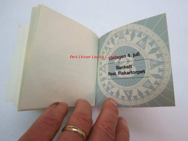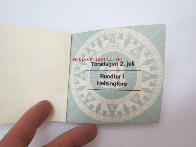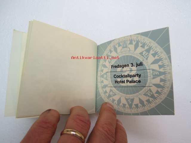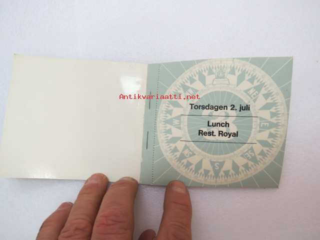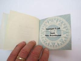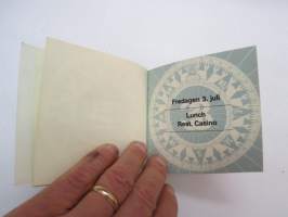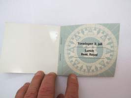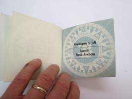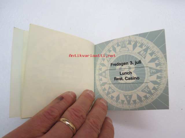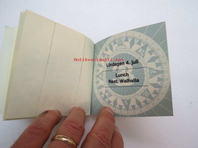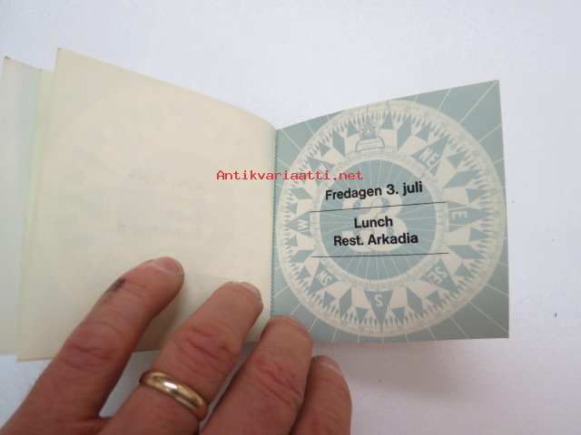 Skandinaviske Tandläkareförening (Pohjoismainen hammaslääkäriyhdistys) -Helsingissä pidetyn kongressin pääsy- tai osallistumis- sekä ruokailuliput, käyttämätön vihkonen, painotuotteen ulkoasun piirtänyt ja suunnitellut Erik Bruun -admission and meal coupons for congress guests, designed by Erik Bruun