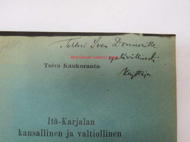 Toivo Kaukoranta, 192517 x 25 cm. Tekin omiste Sven Donnerille.