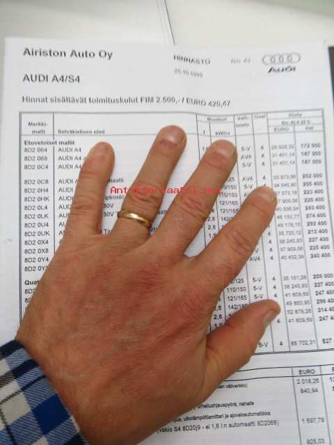 Audi A4 2000 -myyntiesite / sales brochure