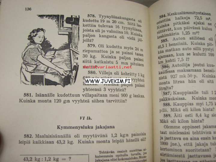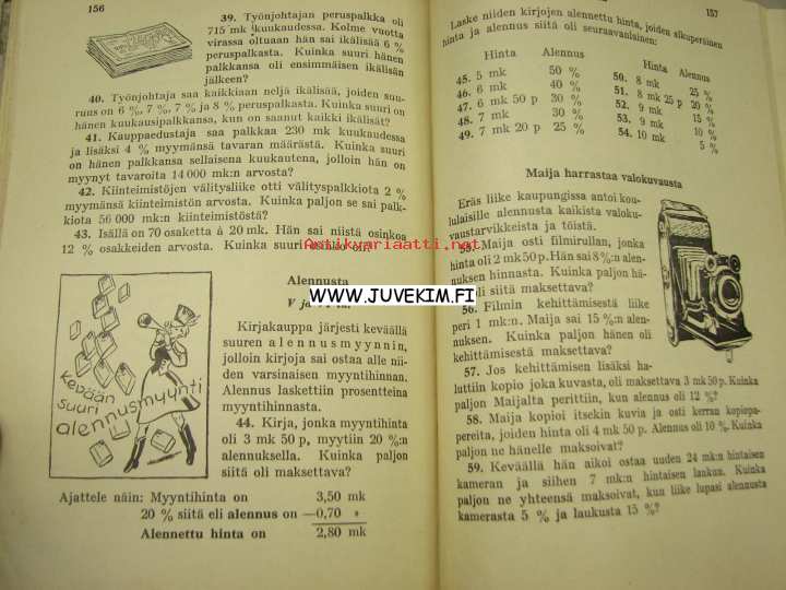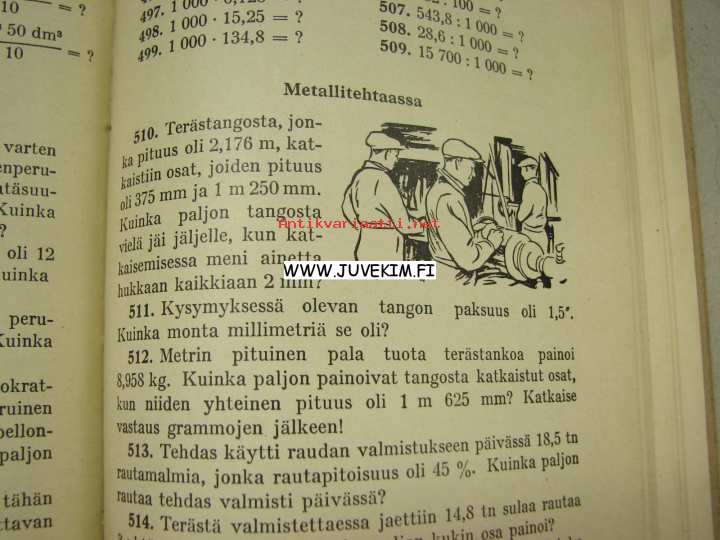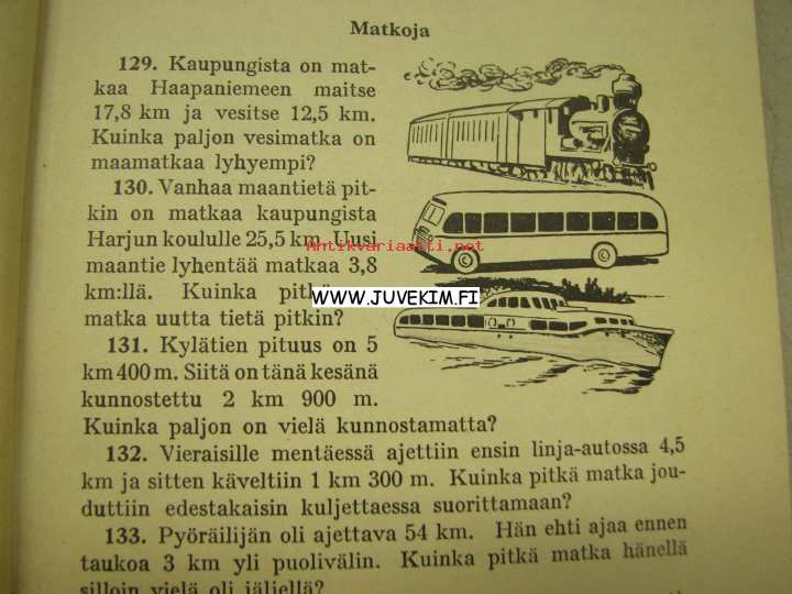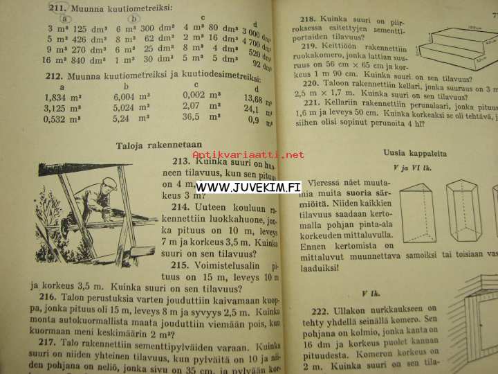 Pajunen Väinö, Elimäki Lauri, WSOY, 196315 x 20 cm kirja. Maaseudun kansakoulujen laskennon ja mittausopin oppikirja, kuvittanut Olavi Vikainen.