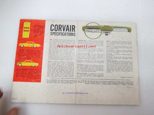 Chevrolet Corvair 1960 -myyntiesite / sales brochure