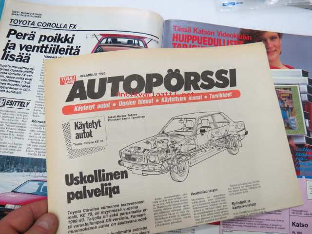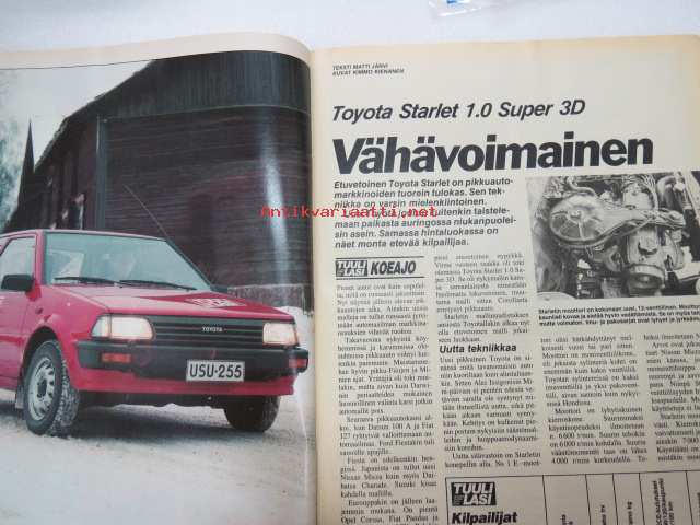Tuulilasi 1985 nr 2, sisältää mm. seur. artikkelit / kuvat / mainokset; Kansikuva Keskikokoiset dieselit, Keijo Rosberg, Toyota Starlet 1,0 super 3D koeajo, Kova