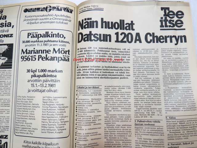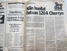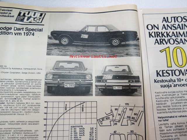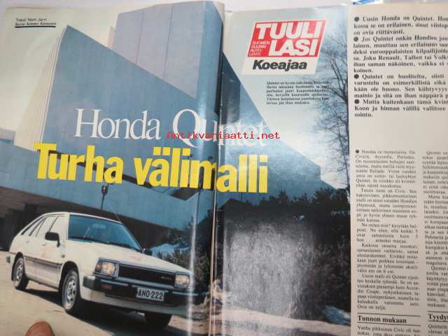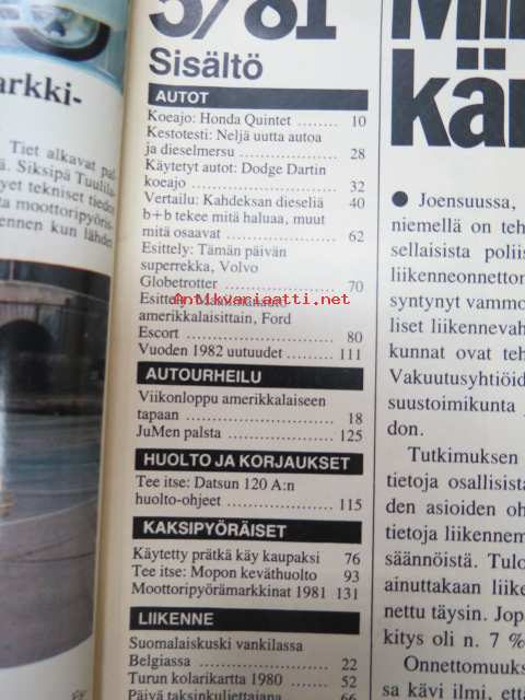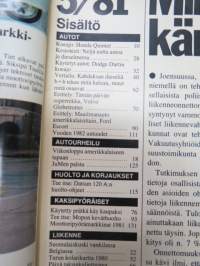 Tuulilasi 1981 nr 5, sisältää mm. seur. artikkelit / kuvat / mainokset; Kansikuva Tuhat kilometriä tankillisella, Honda Quintet - turha välimalli, U.S. GP West, Suomalaisrahtari vankilassa Belgiassa - Seppo Salminen, Koeajossa Dodge Dart Special Edition 1974 koeajo, M/S Finlandia - kuin kerrostalo laineilla, Päivä taksinkuljettajana - rankan päivän ilta, Volvo F12 Globetrotter -esittely, Onni Vilkas ei suotta kehu Sunocoa, Ford Escort esittely, Mopon keväthuolto Tee-se-itse, 23 kevytperävaunua, Moottoripyörämarkkinat 1981, ym. -motoring magazine21 x 30 cm.
