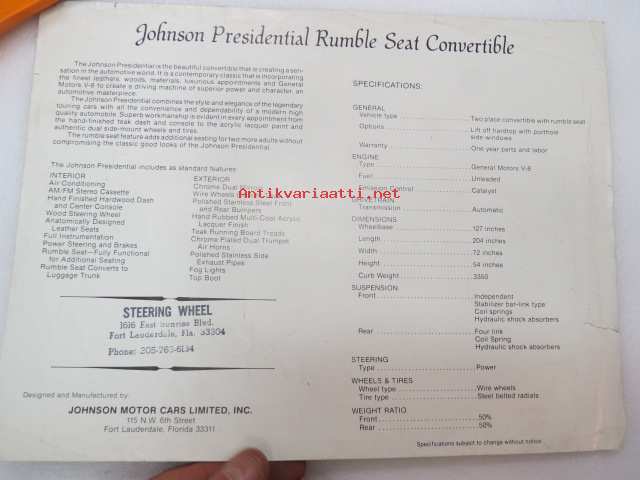 Johnson Presidential Rumble Seat Convertible -sales brochure / myyntiesite