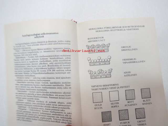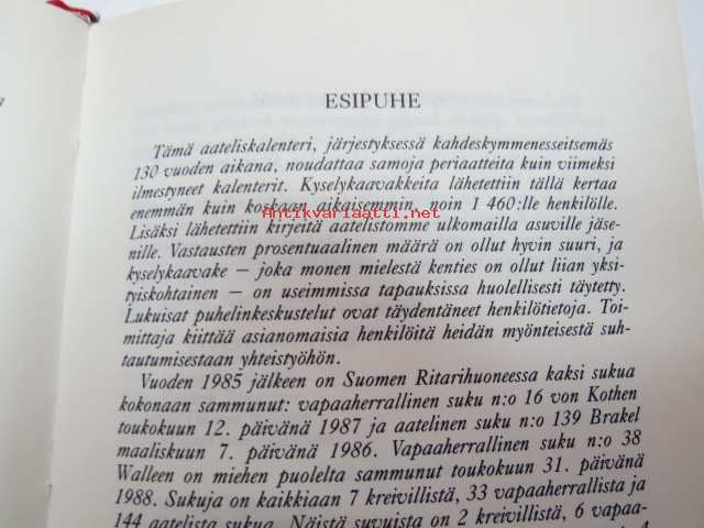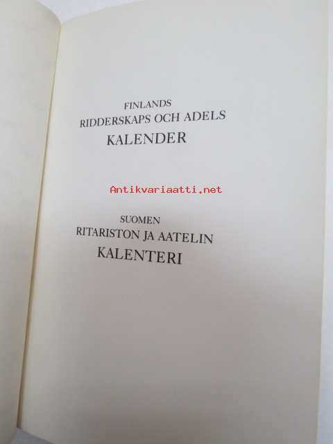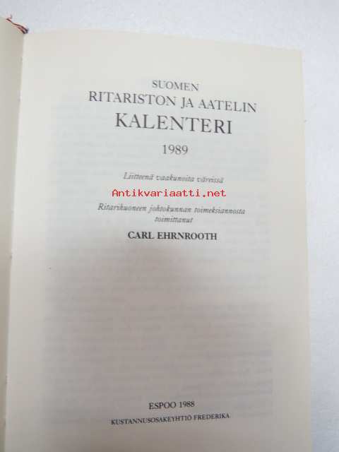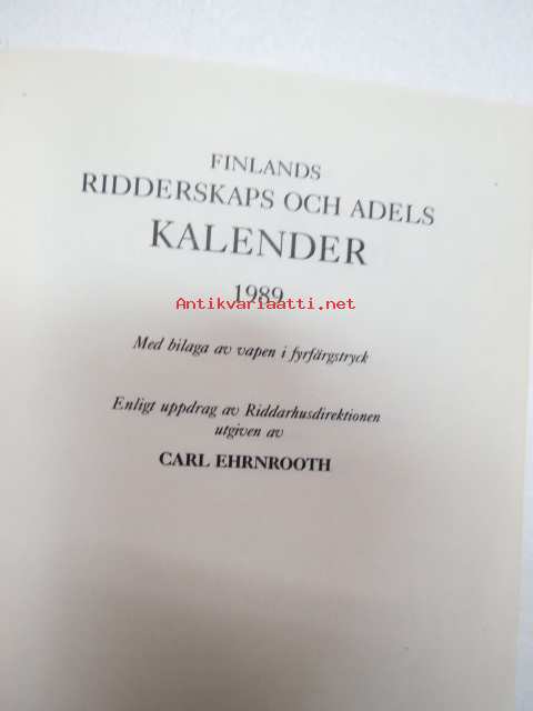 Finlands ridderskaps och adels kalender 1989 - Finlands adelskalender - Suomen Aateliskalenteri - Suomen ritariston ja aatelin kalenteri (vapen i färg H-R vaakunoita väreissä) -aateliskalenteri -calendar / catalog of finnish nobility12 x 16 cm.