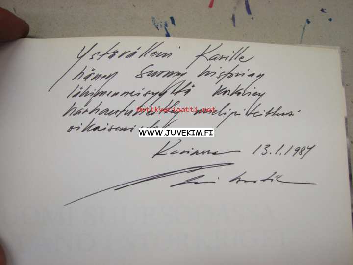 | Saatavilla | 1 kpl | | Julkaisuvuosi | 1984 | | Sivuja | 295 | | Painos | 1. | | Kunto | K3 | | Sidonta/painoasu | Sidottu (kovak.) | | ISBN | 951-95781-5-3 | | Kielet | Suomi |