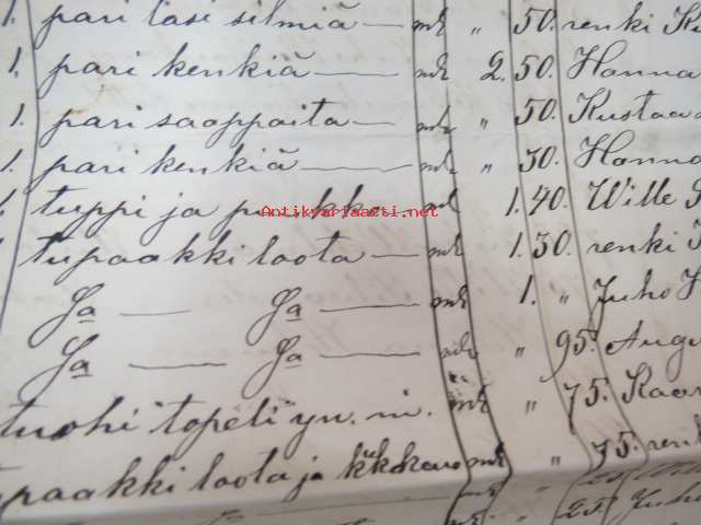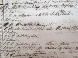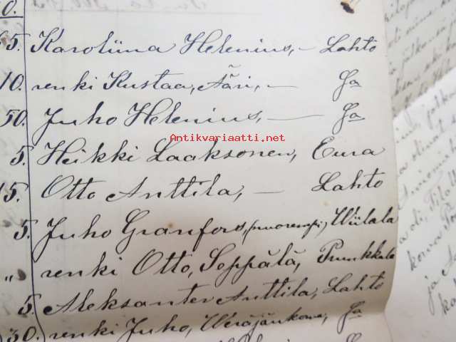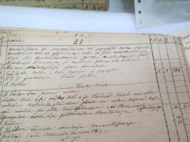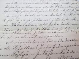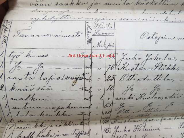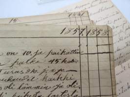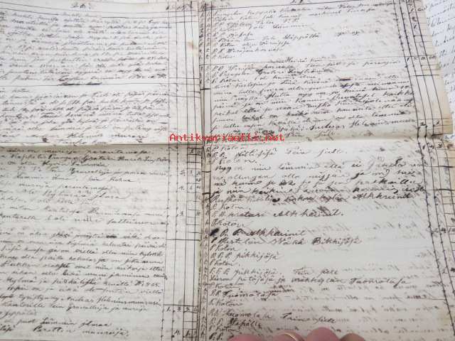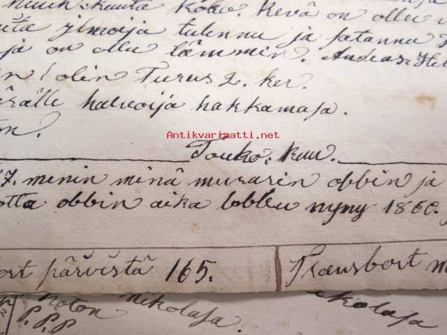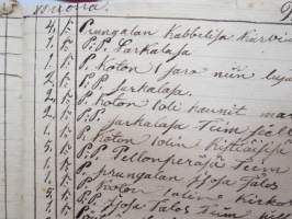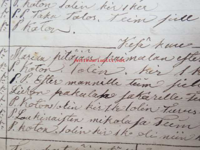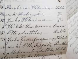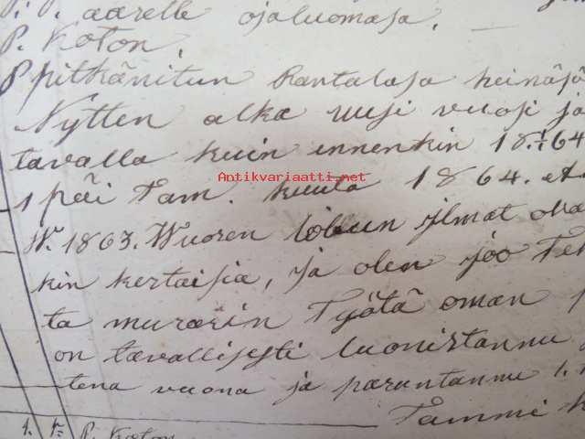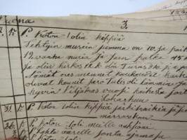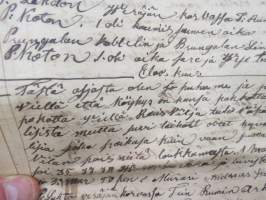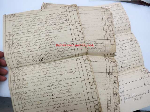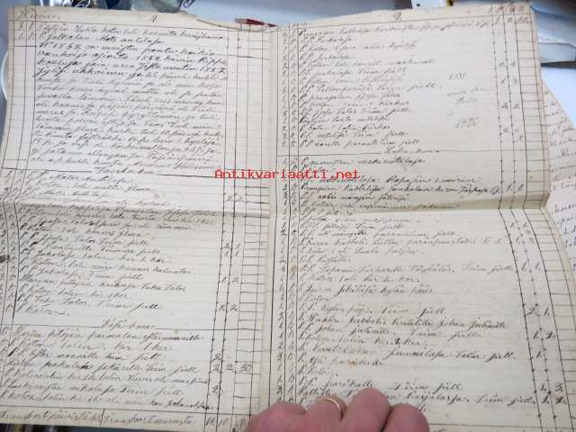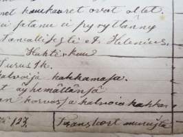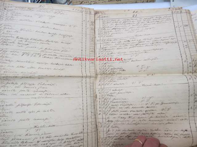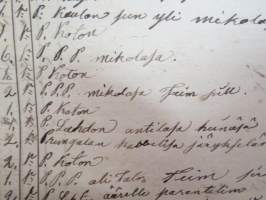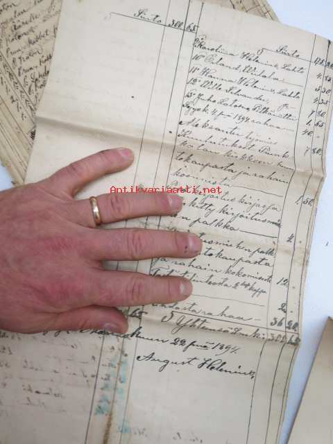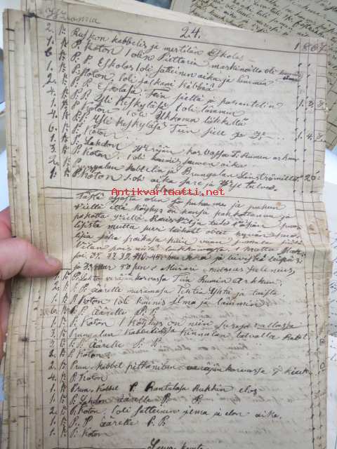 Muurari Anders / Antti Helenius, Pöytyä - Lahto - Ojalan torppa, kuollut 8.6.1893, kansanmiehen pitämät päiväkirjat / muistiinpanot elämästä ja oloista vuosien 1857-1867 väliseltä ajalta. Sivupuutteistaan huolimatta muistiinpanoista ja merkinnöistä saa hyvän käsityksen aikansa ammattimiehen työstä & tuloista, elinolosuhteista, vuodentuloista ja ajan yleisestä ilmapiiristä sekä taloudellisista oloista - myös säätilaa on seurattu. Käynnit lähiseudun tiloilla ja rustholleissa lueteltu tarkkaan tehtyine töineen, sisältää 20 sivua tekstiä sekä perukirjan hänen jälkeensä sekä kuolinpesän huutokauppaluettelon. Kohtalaisen hyvää ja lukukelpoista tekstiä - noina aikoina "sujuva" kirjoitustaito ei ollut suinkaan itsestäänselvyys, päiväkirjan pito todella harvinaista - saati että niitä vähiä olisi säilynyt näistä kansankerroksista nykypäivään. Selkeä ja hyvä tutkimuskohde hyvin identifioitavissa olevasta henkilöstä. -Diary and remarks of an bricklayer / farmer / handyman between years 1857-1867, 20 pages of texts and 2 documents giving good insight to life of a common man (very rare custom to keep diary and a miracle that these have survived to this day)Kohteesta 47 kuvaa / 47 pictures from this item.