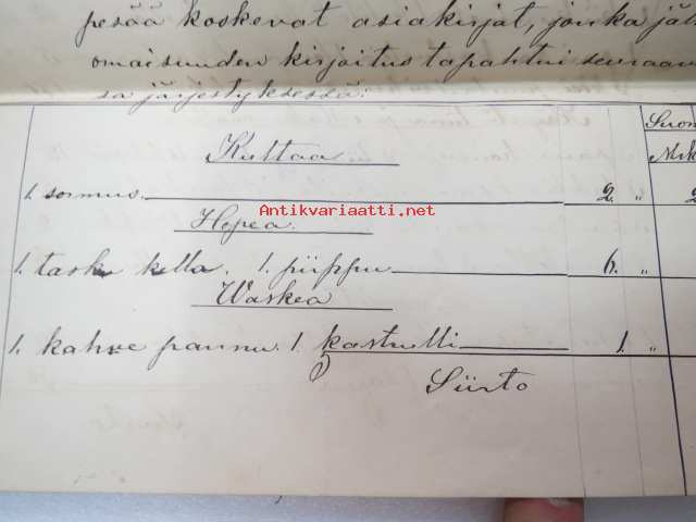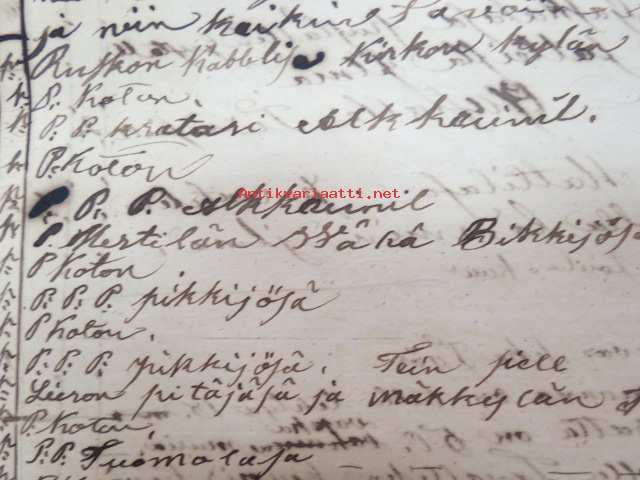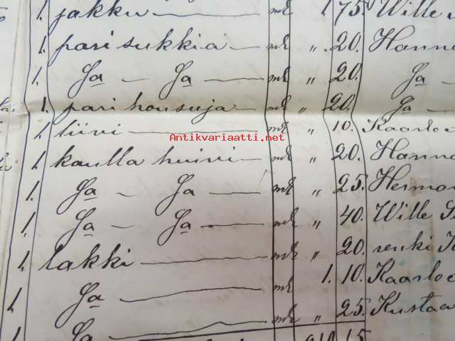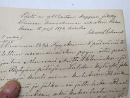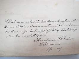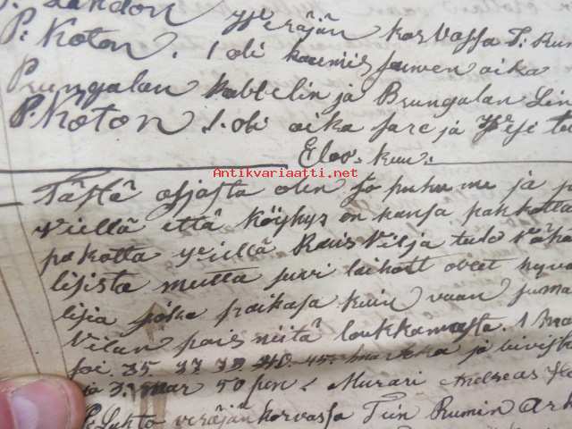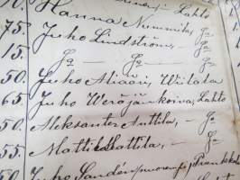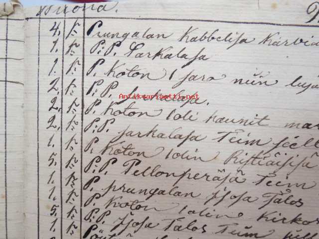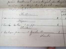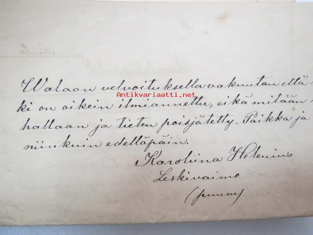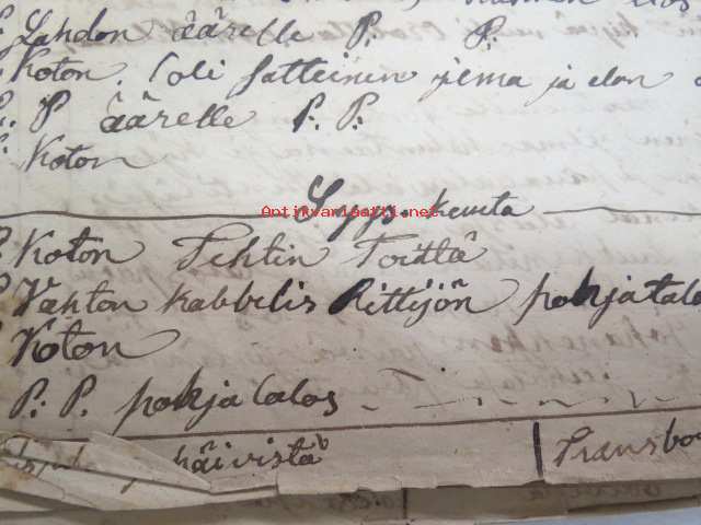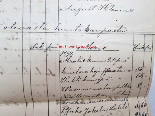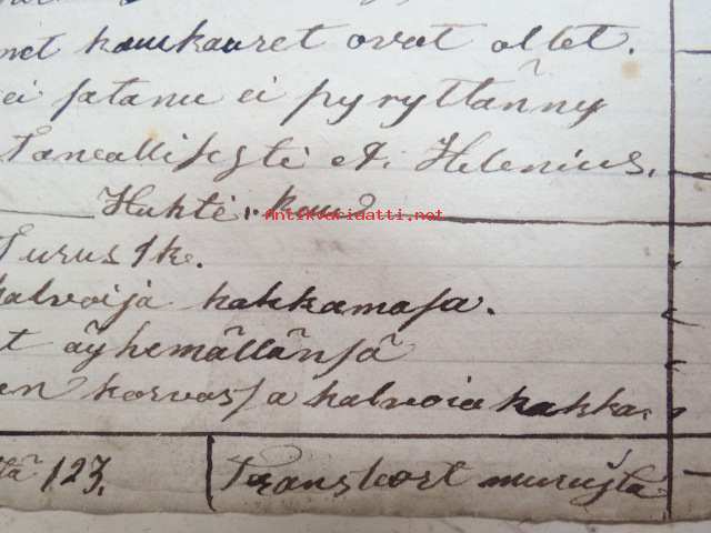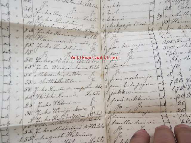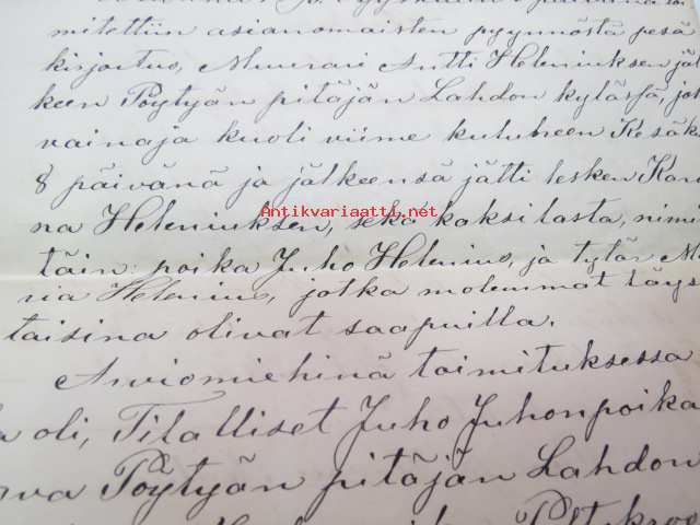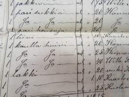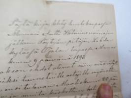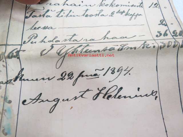Muurari Anders / Antti Helenius, Pöytyä - Lahto - Ojalan torppa, kuollut 8.6.1893, kansanmiehen pitämät päiväkirjat / muistiinpanot elämästä ja oloista vuosien 1857-1867 väliseltä ajalta. Sivupuutteistaan huolimatta muistiinpanoista ja merkinnöistä saa hyvän käsityksen aikansa ammattimiehen työstä & tuloista, elinolosuhteista, vuodentuloista ja ajan yleisestä ilmapiiristä sekä taloudellisista oloista - myös säätilaa on seurattu. Käynnit lähiseudun tiloilla ja rustholleissa lueteltu tarkkaan tehtyine töineen, sisältää 20 sivua tekstiä sekä perukirjan hänen jälkeensä sekä kuolinpesän huutokauppaluettelon. Kohtalaisen hyvää ja lukukelpoista tekstiä - noina aikoina "sujuva" kirjoitustaito ei ollut suinkaan itsestäänselvyys, päiväkirjan pito todella harvinaista - saati että niitä vähiä olisi säilynyt näistä kansankerroksista nykypäivään. Selkeä ja hyvä tutkimuskohde hyvin identifioitavissa olevasta henkilöstä. -Diary and remarks of an bricklayer / farmer / handyman between years 1857-1867, 20 pages of texts and 2 documents giving good insight to life of a common man (very rare custom to keep diary and a miracle that these have survived to this day)Kohteesta 47 kuvaa / 47 pictures from this item.
