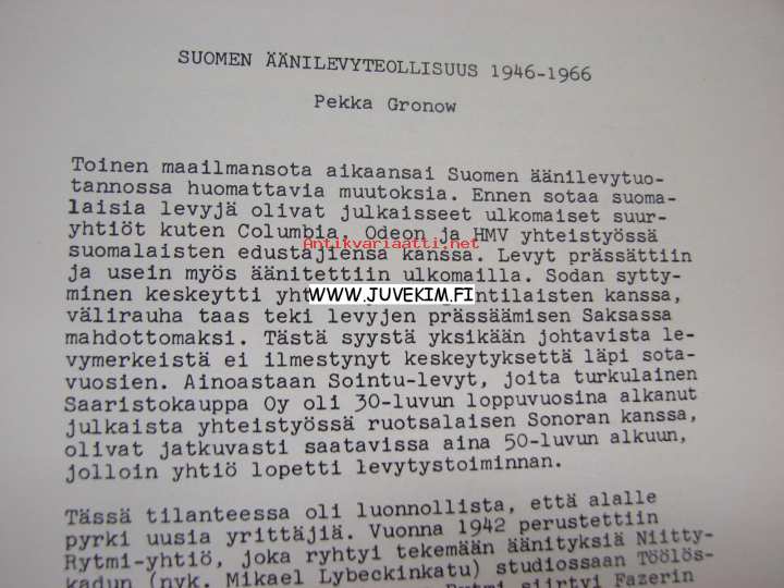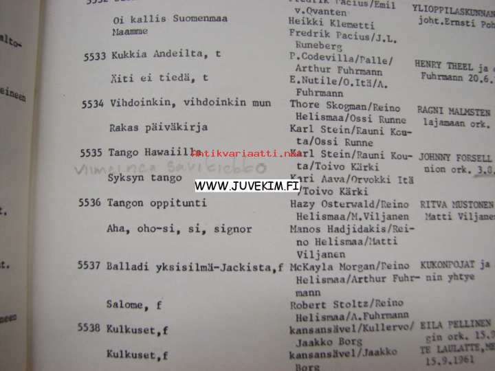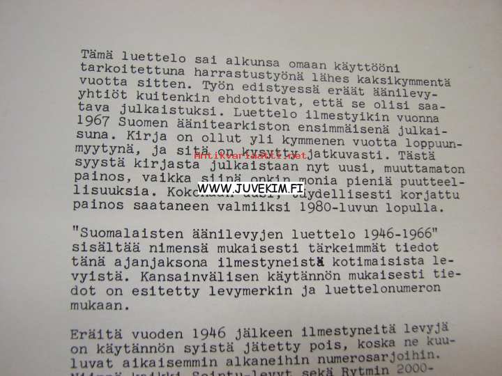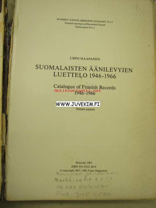 Suomalaisten äänilevyjen luettelo 1946-1966 Suomen Äänitearkiston julkaisuja nr 1