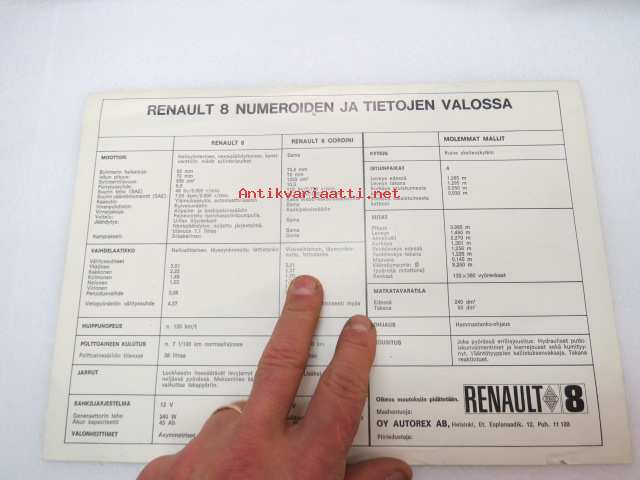 Renault 8 -myyntiesite / brochure