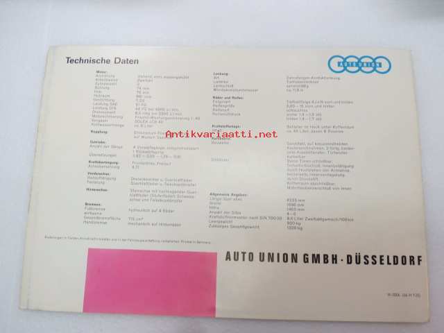 Auto Union 1000 Limousine -myyntiesite -brochure