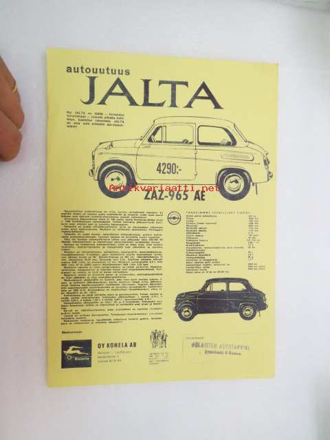 Jalta ZAZ-965 AE -myyntiesite - brochure