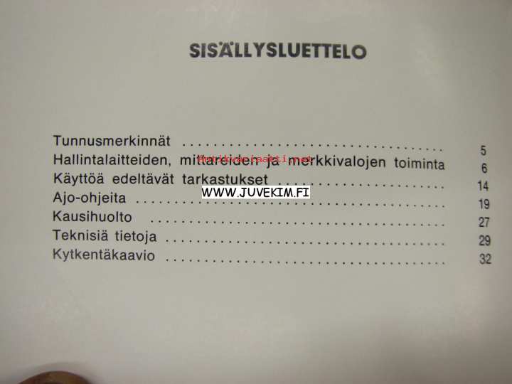 | Saatavilla | 4 kpl | | Julkaisuvuosi | 19?? | | Sivuja | 32 | | Kunto | K3 | | Sidonta/painoasu | Nidottu (pehmeäk.) | | Kielet | Suomi |