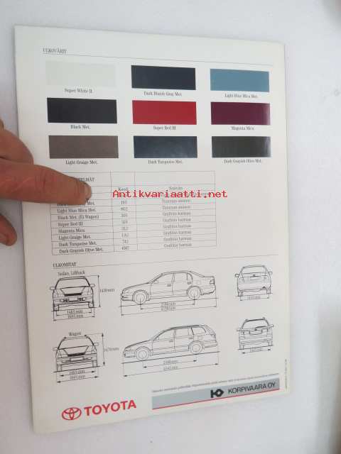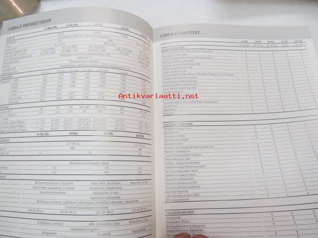 Toyota Carina E 1995 tekniset tiedot -myyntiesite / sales brochure