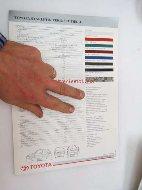 Toyota Starlet 1996 tekniset tiedot -myyntiesite / sales brochure