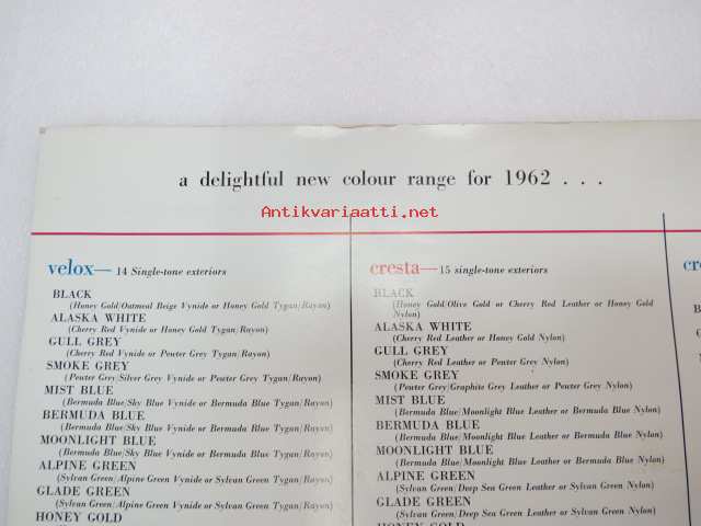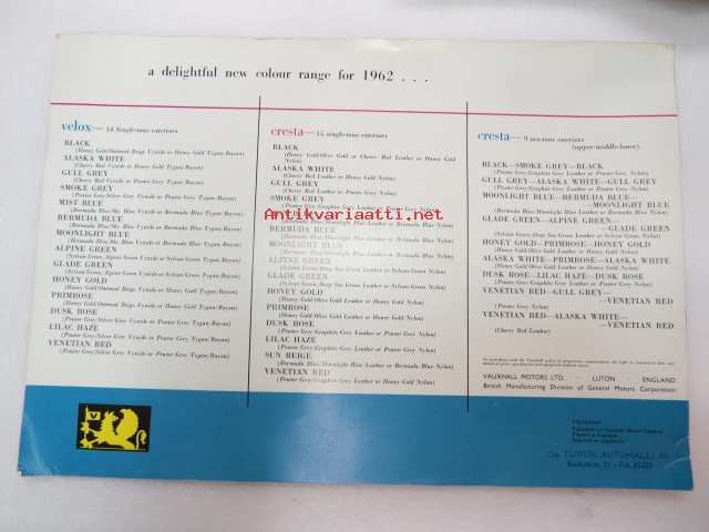 Vauxhall Velox & Cresta -myyntiesite, suomenkielinen / sales brochure