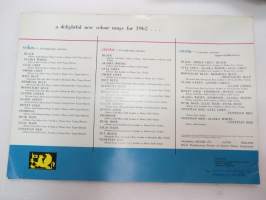| Saatavilla | 1 kpl | | Julkaisuvuosi | 1961 | | Sivuja | 12 | | Kunto | K3 | | Sidonta/painoasu | Pienpainate | | Kielet | Englanti |