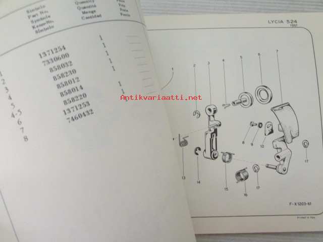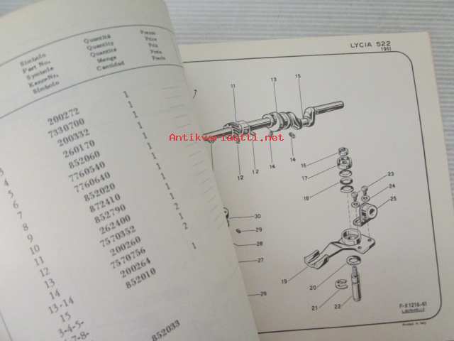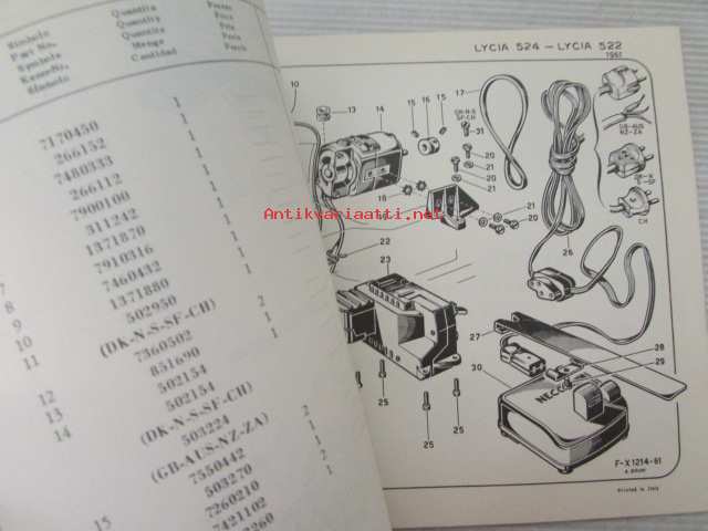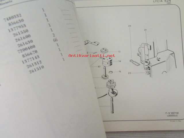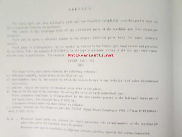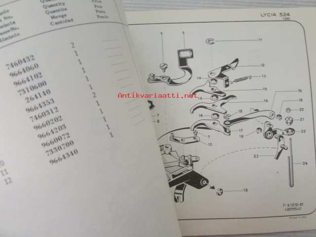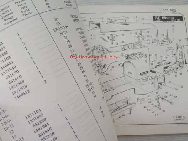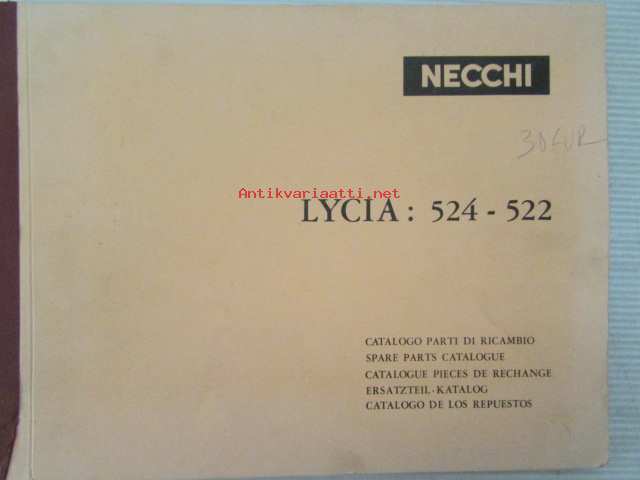 Vecchi Lycia:524-522 Spare Parts Catalogne / Catalogo Parti Di Ricambio / Catalogne Pieces De Rechange / Erzatzteil-Katalog / Catalogo De Los Repuestos - Ompelukoneen varaosakirja21 x 30 cm.
