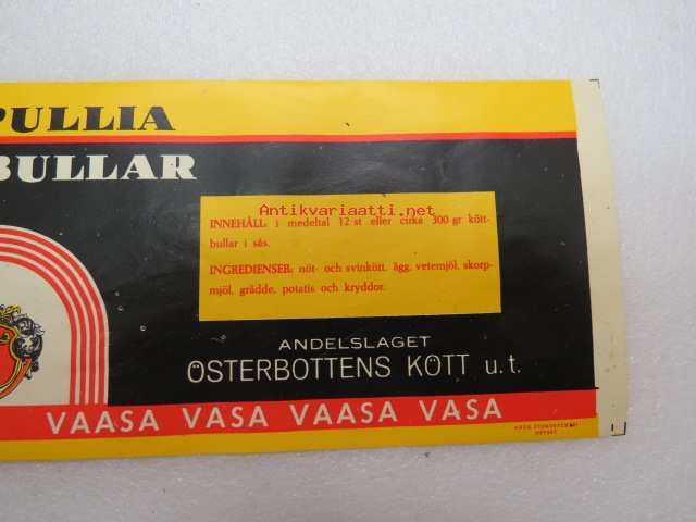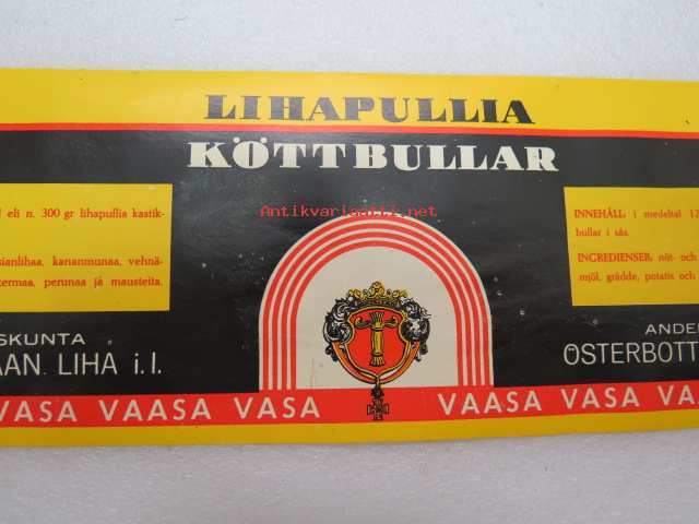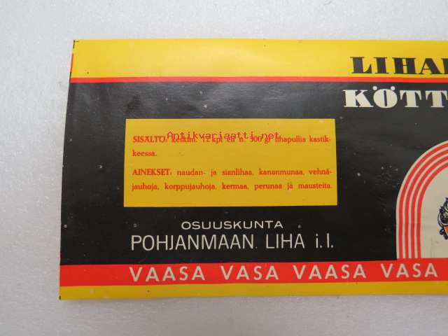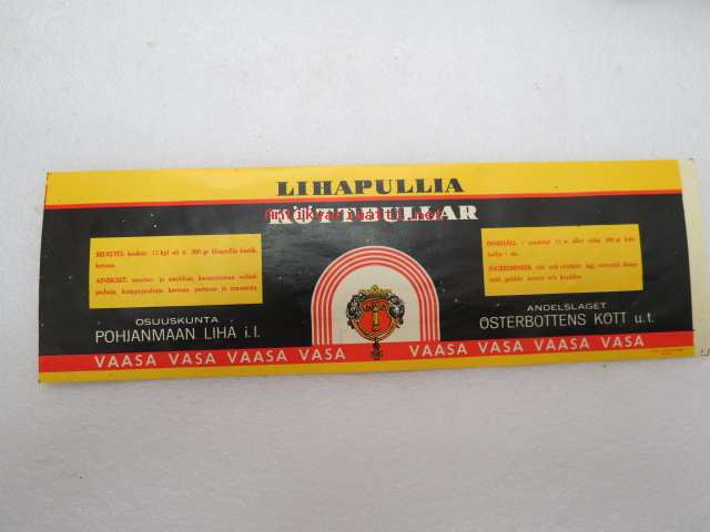 Osuuskunta Pohjanmaan Liha / Andelslaget Österbottens Kött - Lihapullia - Köttbullar -etiketti / label