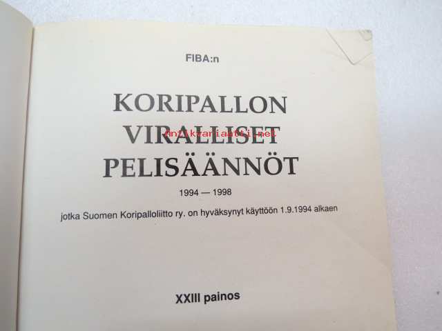 FIBA:n Koripallon viralliset pelisäännöt 1994-1998 -official basketball rules