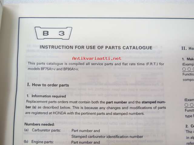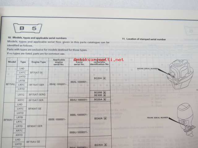 Honda outboard motor BF75At.v, BF90At.v parts catalogue 2 -perämoottorin varaosaluettelo englanniksi