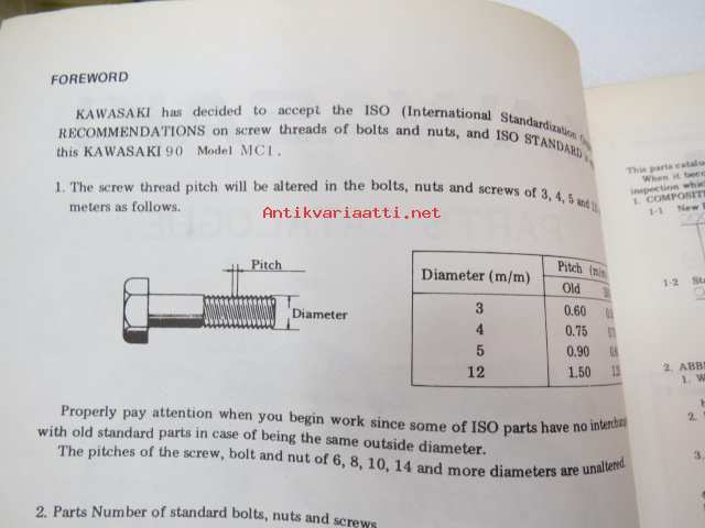 Kawasaki Model 90:MC1 Parts Catalogue -varaosaluettelo