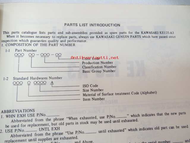 Kawasaki Model KE125-A3 Parts Catalogue -varaosaluettelo