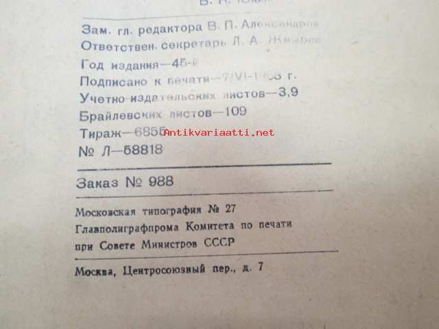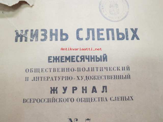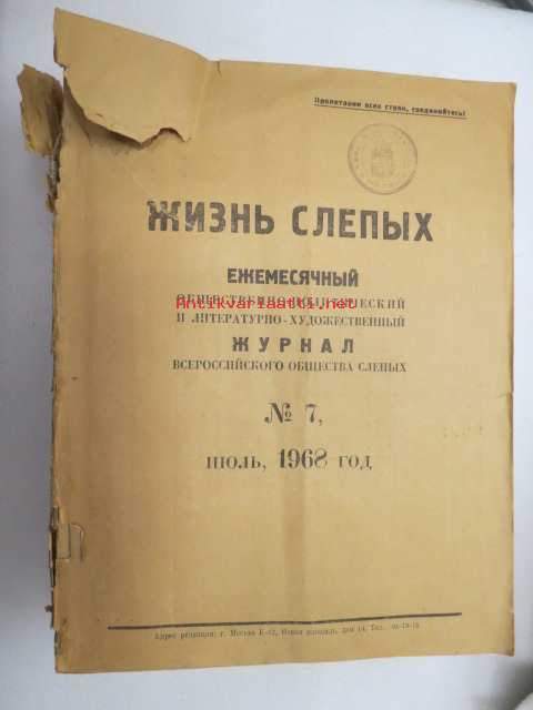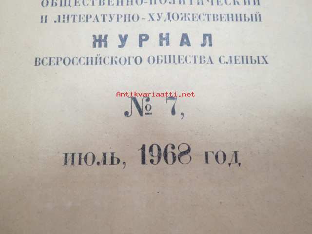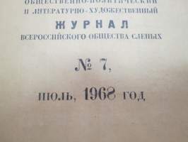 Жизнь слепых - Ежемесячный общественно-политический и литературно-художэственний журнал nr 7, 1968 Neuvostoliittolainen "Sokeain elämää - sosiaalipoliittinen & kirjallistaiteellinen kuukausijulkaisu", Braillen kirjoituksella eli pistekirjoituksella -The Life of the Blind - Monthly socio-political and literary-artistic magazine, braille