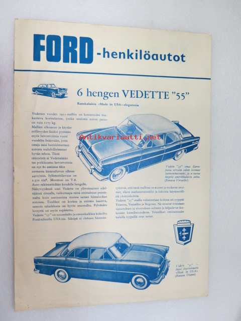 Ford, 1955Ford henkilöautot 1955 Vedette "55", Zephyr Six, Consul, Anglia, Prefect, Taunus, FK-1000 Kleinbus, Customline, Fairlane, Thunderbird, Country Sedan, Lincoln, Mercury -myyntiesite / brochure