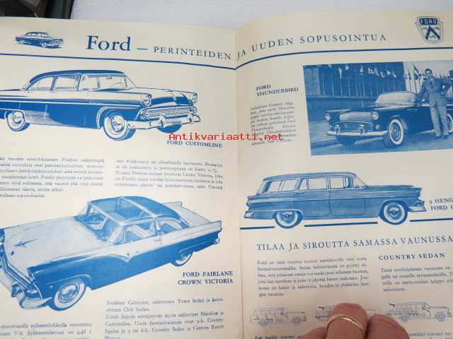 Ford henkilöautot 1955 Vedette "55", Zephyr Six, Consul, Anglia, Prefect, Taunus, FK-1000 Kleinbus, Customline, Fairlane, Thunderbird, Country Sedan, Lincoln,