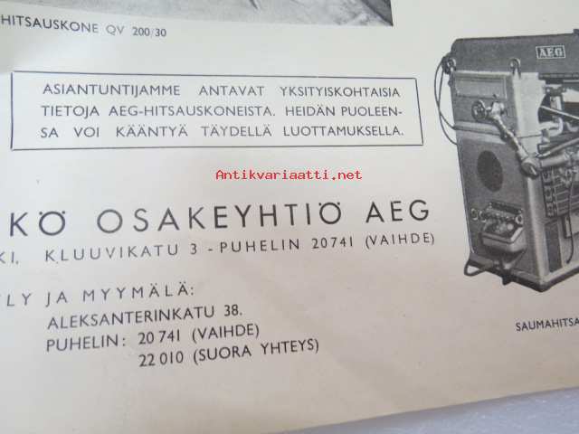 Sähkö Osakeyhtiö AEG, 194?21 x 30 cm.