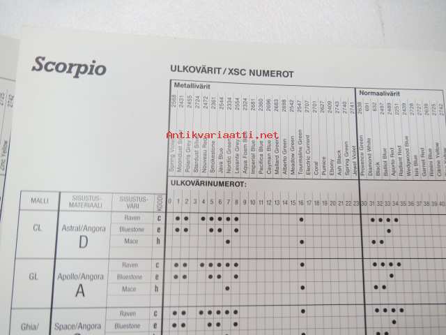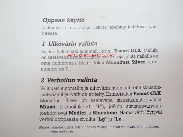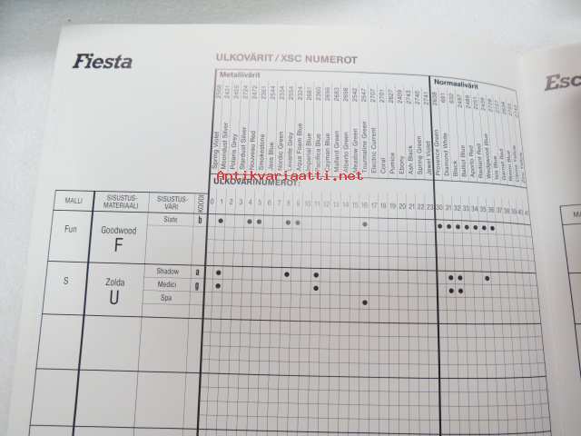 Ford Fiesta, Escort, Mondeo, Scorpio 1993 1/2 väri- ja verhoiluopas -colour & upholstery guide