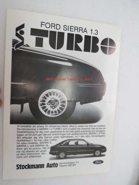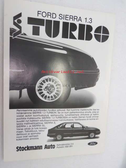 Ford Sierra 1.3 Turbo (Stockmann-Turbo) -myyntiesite / brochure