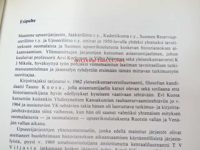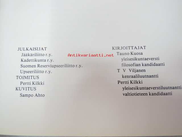 Tauno Kuosa, T.V. Viljanen, Pertti Kilkki, Jääkäriliitto r.y., Kadettikunta r.y., Suomen Reserviupseeriliitto r.y., Upseeriliitto r.y., 197819 x 25 cm.