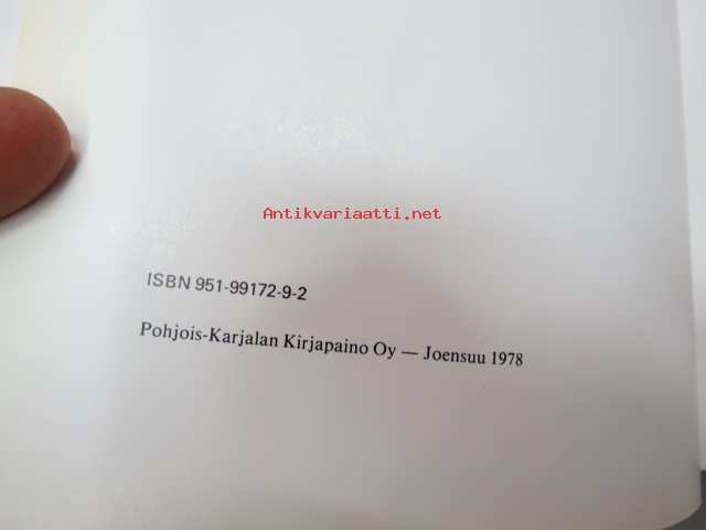 | Saatavilla | 1 kpl | | Julkaisuvuosi | 1978 | | Sivuja | 536 | | Painos | 1. | | Kunto | K3 | | Sidonta/painoasu | Sidottu (kansipaperit) | | ISBN | 951-99172-9-2 | | Kielet | Suomi |