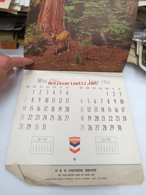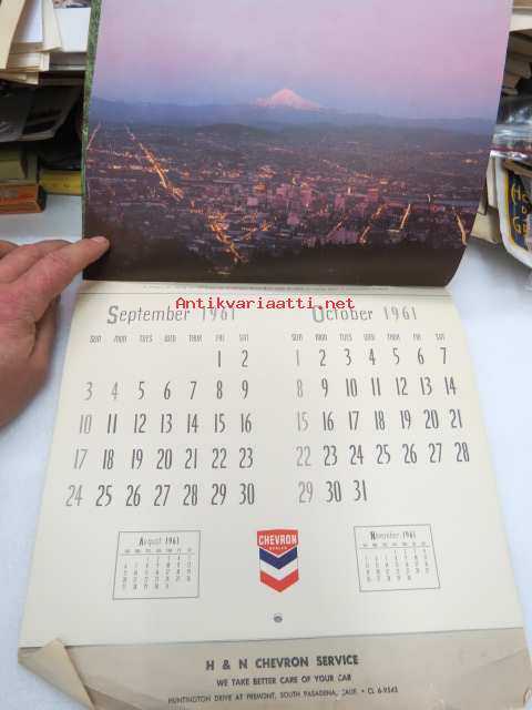 H & N Chevron service - Huntington Drive at Fremont, South Pasadena, California - Wall Calendar 1961 -seinäkalenteri