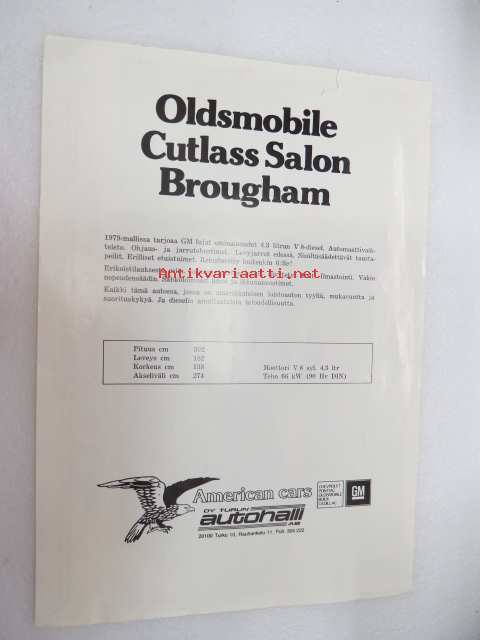 Oldsmobile Cutlass Salon Brougham Sedan -myyntiesite / brochure