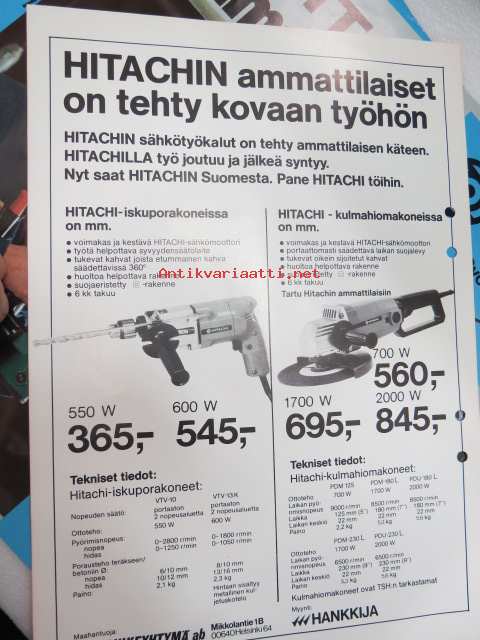 Hitachi hioma- ja porakoneet -8 kpl esite / brochures