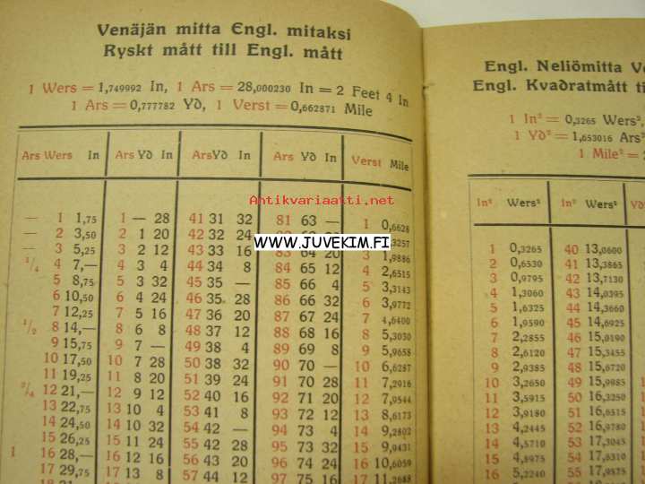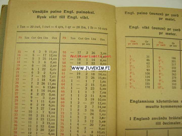Pikalaskija / Snabbräknaren Englannin, Venäjän ja metrijärjestelmän paino-, mitta- ja hintasuhteet toisiinsa verrattuna