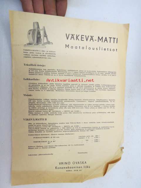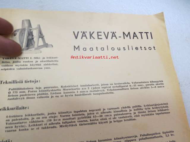 Väkevä-Matti maatalouslietsot / Väinö Ovaska - Konemekaaninen liike - Koria -myyntiesite / brochure, stray blower