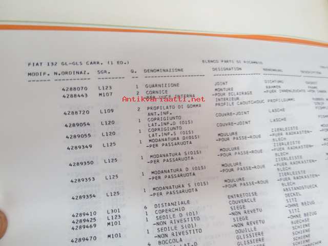Fiat 132 GL, GLS Catalogo parti di ricambio carrozzeria / Catalogue de pièces détachées carrosserie / Ersatzteilkatalog Karosserie / Bodywork spare parts catalog / Catálogo de piezas de repuesto - carrocerìa -korinosien luettelo