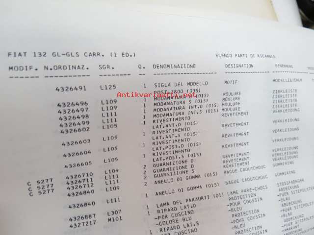 Fiat 132 GL, GLS Catalogo parti di ricambio carrozzeria / Catalogue de pièces détachées carrosserie / Ersatzteilkatalog Karosserie / Bodywork spare parts catalog