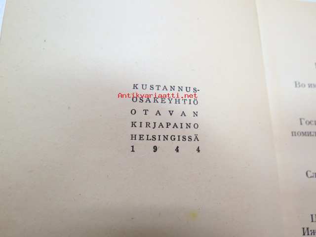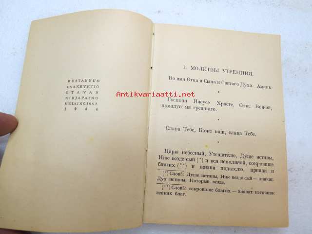Молитвенник -venäläisille sotavangeille tarkoitettu venäjänkielinen rukouskirja, Otava, Helsinki 1944 -prayer book for russian prisoners of war