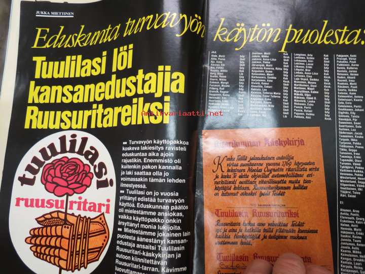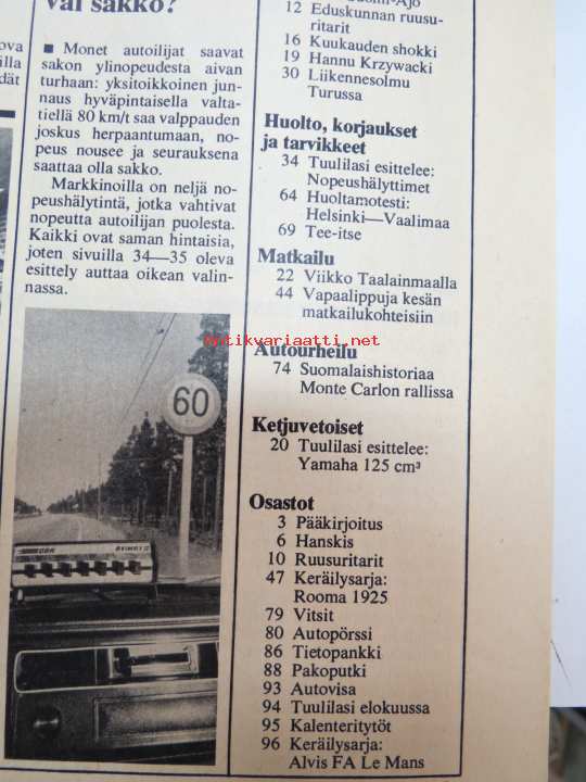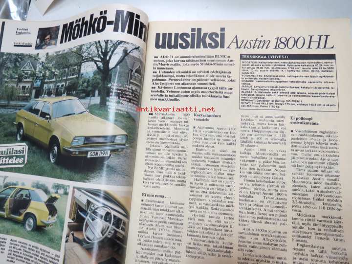 Tuulilasi 1975 nr 7, sis. mm. seur. artikkelit / kuvat / mainokset; Kansikuva Citroën CX 2000 & Fiat 131 Mirafiori (koeajot), Huoltamotesti Helsinki - Vaalimaa, Bitter Diplomat CD, Yamaha RS125, Austin 1800 HL, Kesäauto kesti 122 km, Colt Fan Club tuoteluettelo, LT-Volkswagen - raskas pakettiauto, Mukana Colt Fan Club (Rally Club) tuoteluettelo / kuvasto, ym. -motoring magazine, 21 x 29 cm.