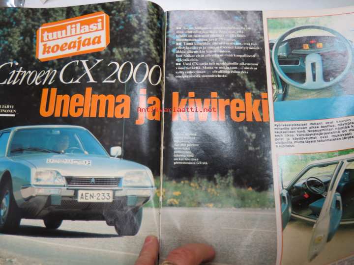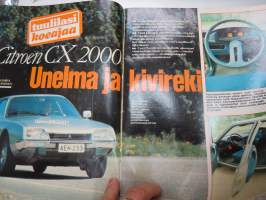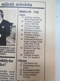 Tuulilasi 1975 nr 7, sis. mm. seur. artikkelit / kuvat / mainokset; Kansikuva Citroën CX 2000 & Fiat 131 Mirafiori (koeajot), Huoltamotesti Helsinki - Vaalimaa,