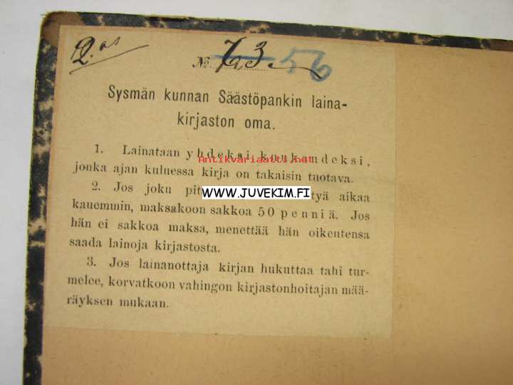 | Saatavilla | 1 kpl | | Julkaisuvuosi | 18 | | Kunto | K3 | | Sidonta/painoasu | Sidottu (kovak.) | | Kielet | Suomi |
