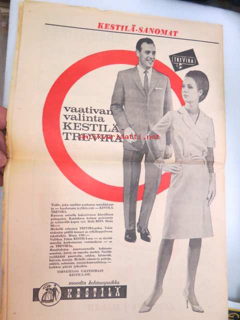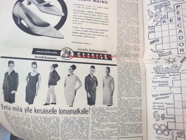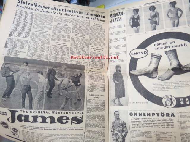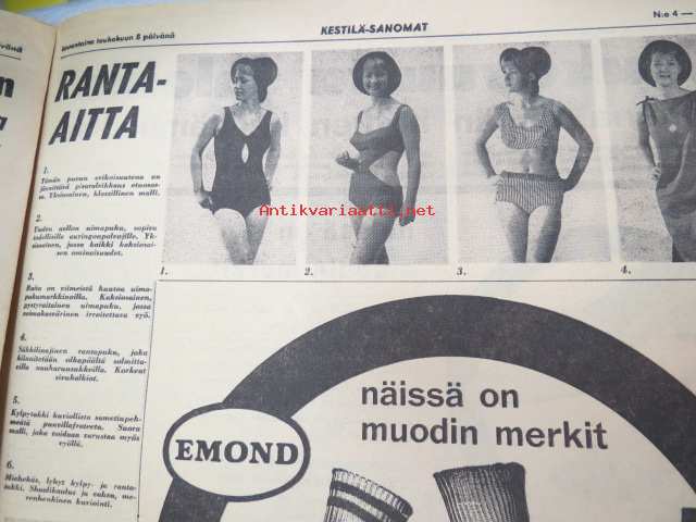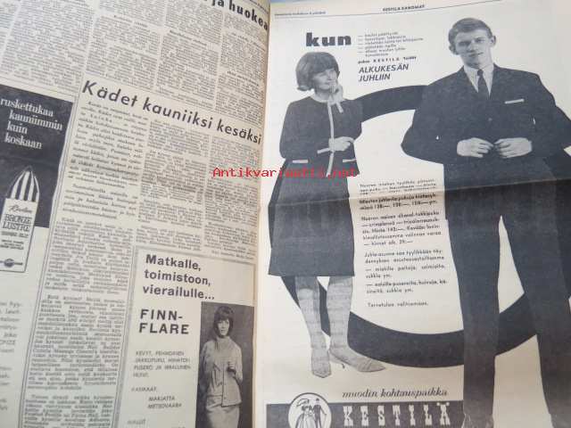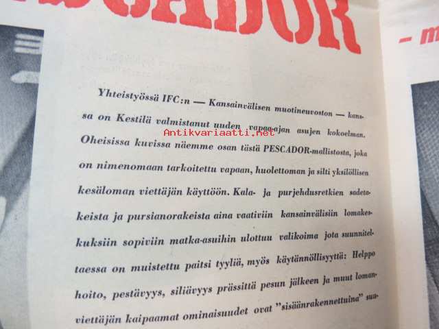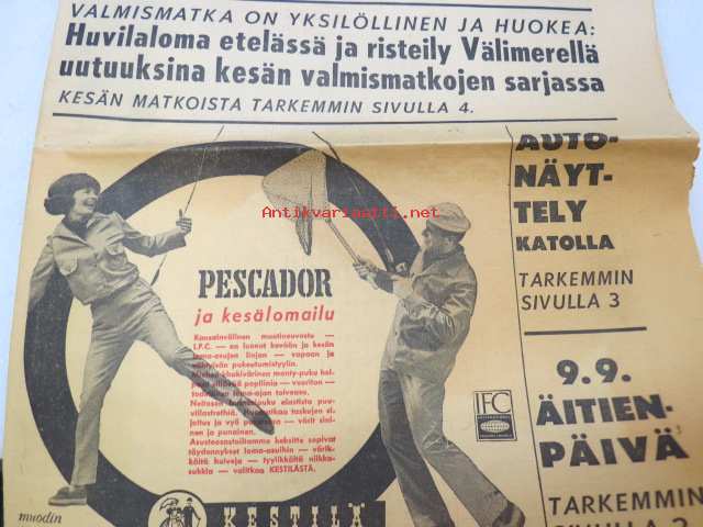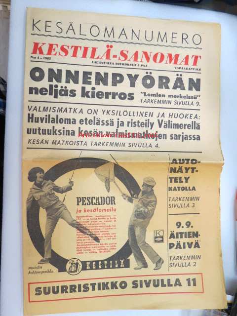 Kestilä-Sanomat 1965 nr 4 -mainosjulkaisu, muotitalon / vaatetustehtaan oma julkaisu, jossa mm. esitellään mm. Pescador-mallisto, Autonäyttely Kestilän muotitalon kattotasanteella, James-mainos, ym. "Kesälomanumero" / clothing company ad
