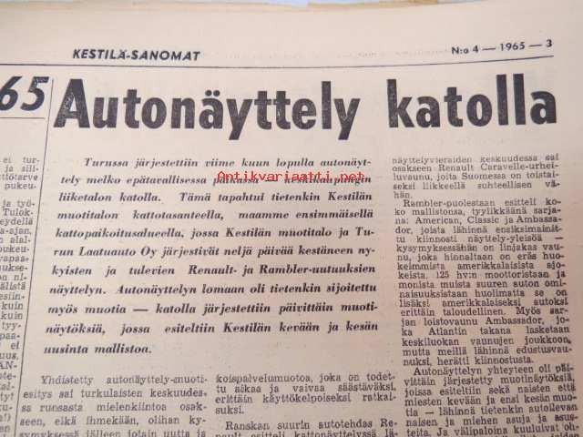 Kestilä-Sanomat 1965 nr 4 -mainosjulkaisu, muotitalon / vaatetustehtaan oma julkaisu, jossa mm. esitellään mm. Pescador-mallisto, Autonäyttely Kestilän