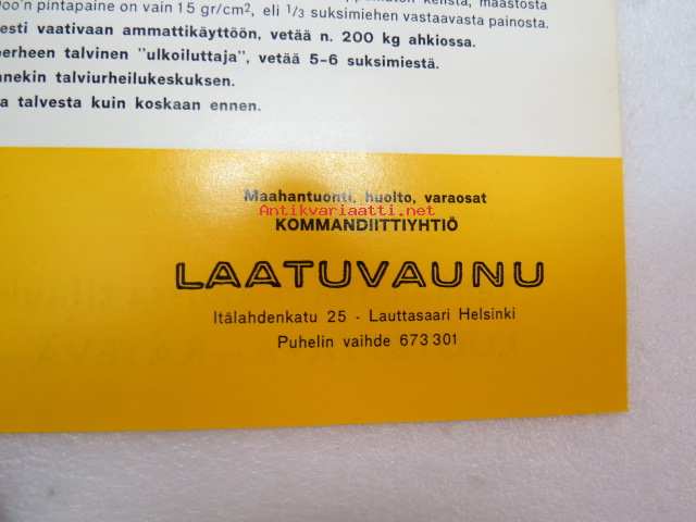 | Saatavilla | 1 kpl | | Julkaisuvuosi | 1964? | | Sivuja | 2 | | Kunto | K3 | | Sidonta/painoasu | Pienpainate | | Kielet | Suomi |