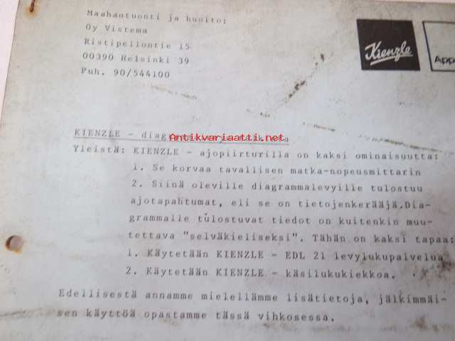 Kienzle diagrammalevyn tulkinta -ajopiirturikiekko ja sen tiedon tulkinta -info available from Kienzle diagraph disk